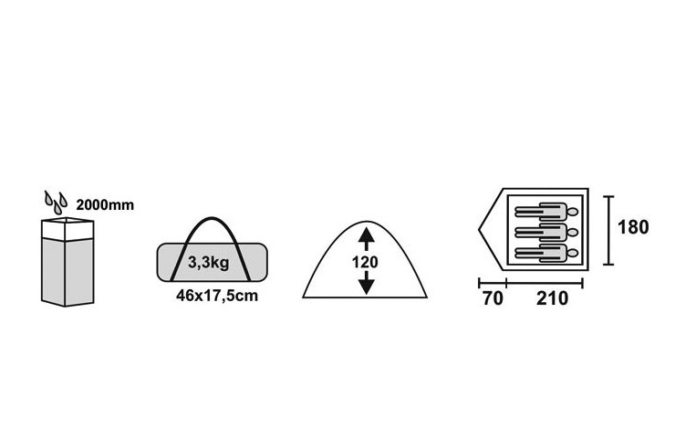 | Размеры внутренней палатки (ДхШхВ) | 210x180x120 см |