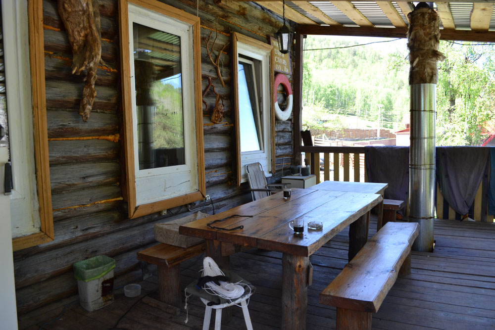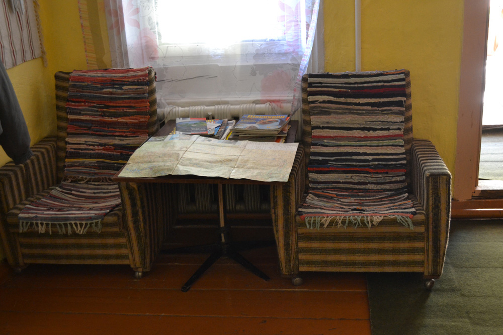 Еще один вариант проживания – небольшой домик под названием «Избушка», вмещающий до четырех человек + возможность доп. размещения двух человек. Отопление – печное, воду нужно приносить из «Клуба», расстояние – 10 метров. На первом этаже – гостиная зона, стол, стулья, печь и т.д., на втором этаже спальня. Есть электрочайник.