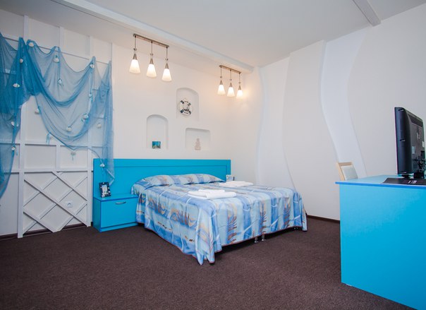 - Однокомнатные номера. Классический Double рассчитаны на два места и имеют площадь 24 м кв. (завтрак и обед включены). В комнате есть двуспальная кровать, шкаф, сейф, чайный сервиз, чайник, ТВ, туалетный столик, мини-холодильник, сушилка. В ванной душевая кабина, набор косметический, полотенца и фен.