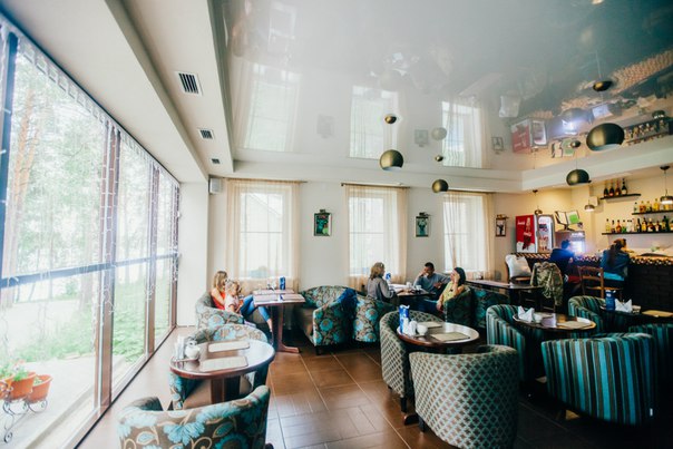 Отдыхающие питаются в ресторане "7 Небо" блюдами европейской и русской кухни, детского меню и комплексными обедами. Возможно проведение банкетов и торжеств, деловых мероприятий. На 1 этаже зал на 20 человек с барной стойкой. На втором этаже зал на 80 человек.