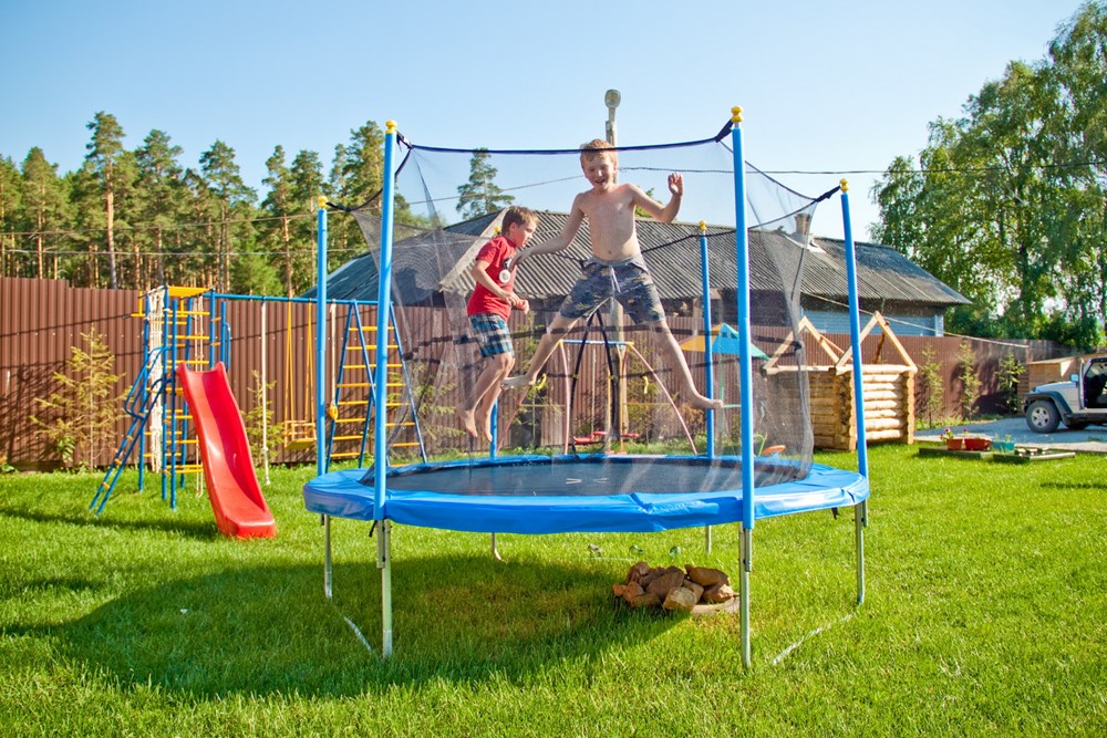 - детская игровая зона с батутом и спортивными снарядами, а также в вольере домашняя лосиха Лапушка;