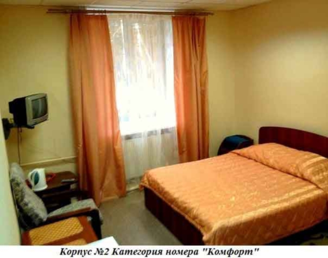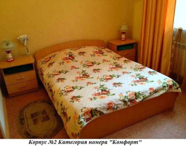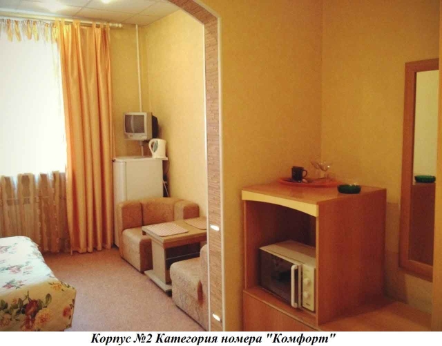 - Номер Комфорт, рассчитан на двух человек и оснащен двуспальной кроватью, санузлом и душем, телевизором, холодильником, микроволновой печью, чайником, постельным бельем, полотенцами и феном. Питание не предусмотрено.