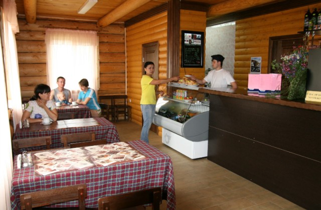 Проживание: Своим гостям комплекс предлагает разместиться в гостиничных номерах (санузел на этаже) или в гостевом домике на 8-10 чел. (с санузлом, кухней, телевизором, мягкой мебелью). Кроме того, на территории можно разместиться в палатке.