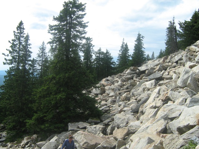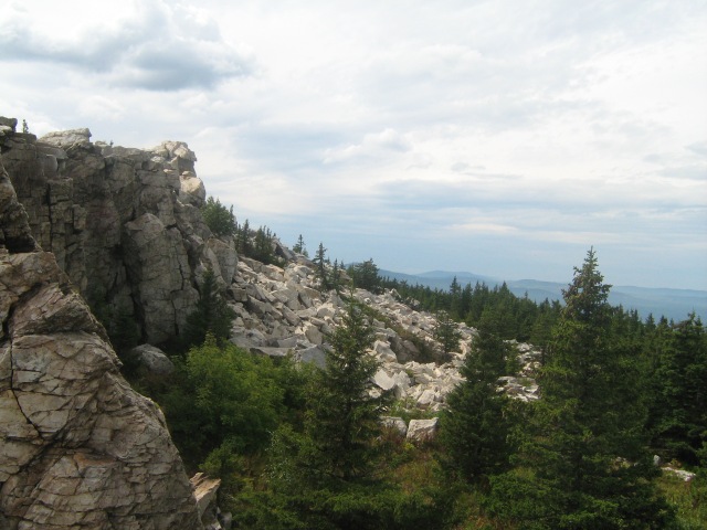 Вершина хребта имеет необычную форму, она увенчана гигантскими останцами, высота которых достигает 10-12 метров. Эти каменные массивы носят название «Медведи». Также на склонах хребта можно встретить курумы – «горные реки», состоящие из больших кварцитовых глыб.